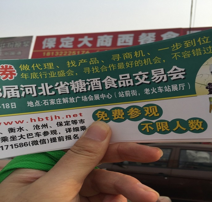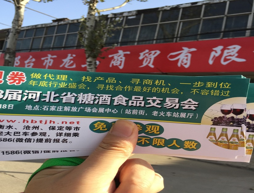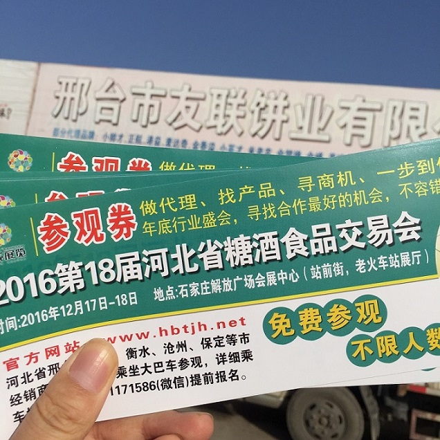 2016第18届河北糖酒食品交易会,河北省十一个地级市一对一发放门票,附近省市也全覆盖,严寒挡不住我们宣传的脚步,一切只为了展会效果!